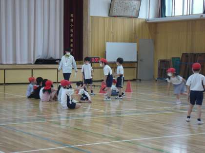 2年1組は,体育科で,新体力テストに挑戦しました。反復横跳びと長座体前屈を行いました。正しいやり方を確かめてから活動しました。