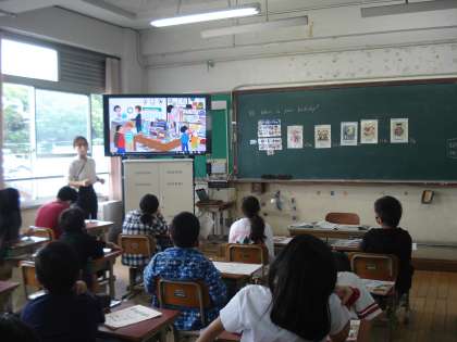 5年1組は,外国語活動で,「When is your birthday?」の表現を学習しました。誕生日プレゼントを購入する場面の会話を参考に,友だちに誕生日を尋ねる活動を行いました。
