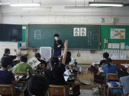 5年1組は,書写で,「成長」という字を書きました。筆順に気を付けながら,字形を整えて書きました。横画の長さの違いにも気付きました。