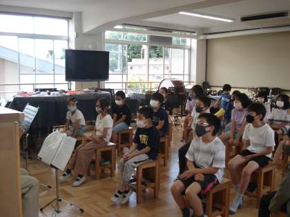 3年2組は,音楽科で,リコーダーの導入学習をしました。ゲストティーチャーの先生から,縦笛の種類や音の出し方について教わりました。リコーダーの素敵な音色に耳を傾けました。