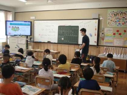 1年2組は,算数科で,「ふえるたしざん」について学習しました。3+4や5+2の問題を数図ブロックを操作しながら解いていきました。「ふえる」意味がよくわかりました。