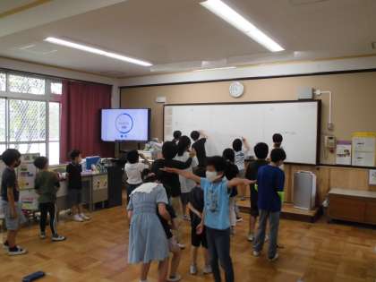 次に,昼休みに,第2回なかよし集会を各教室で行いました。各教室をZOOMで結び行いました。なかよし遊びの振り返りを行ったり,なかよし掃除の役割を決めたりしました。こちらも6年生が中心となって話し合いを進めました。