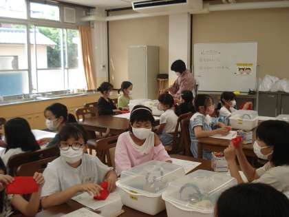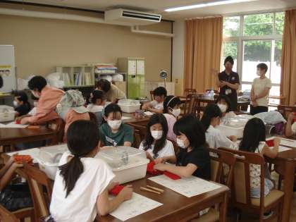雅部は,茶道に使う「ふくさ」の折り方を学びました。地域に在住されるゲストティーチャーに,ふくさの持ち方や折る順序を教えていただきました。実際に使っての実習が楽しみになりました。