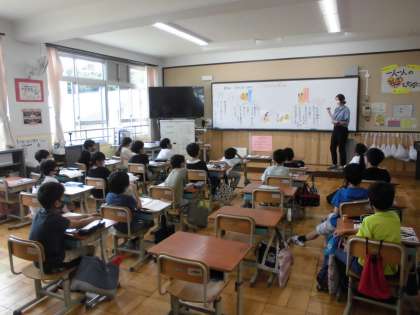 3年1組は,外国語の学習をしました。身のまわりの色やスポーツ,食べ物の表現の仕方について学びました。