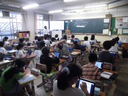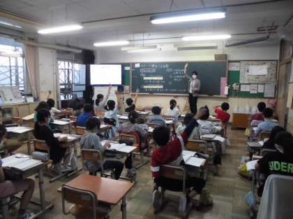 4年生は,算数科の学習をしました。1億をこえる数について,目的にあった大きな数をつくったり,ある数の何倍にあたる数について考えたりしました。
