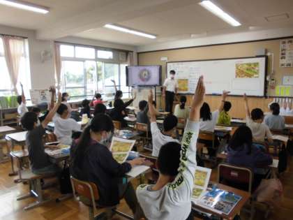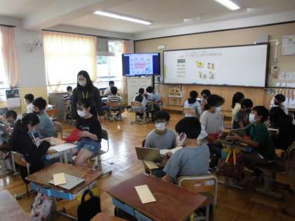 6年1組は,外国語の学習をしました。「Welcome to Japan」の単元で,今まで学習してきたことを生かして,日本を紹介しました。