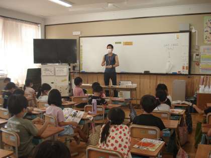 1年2組は、図画工作科で、ハンガーを使った飾り作りに挑戦しました。風の力で、模様が変わります。色や付け方を工夫しながら作成しました。