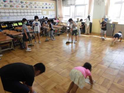 最後に、5時間目の後半に、なかよし掃除を行いました。グループごとに協力しながらそれぞれの場所を綺麗にしました。