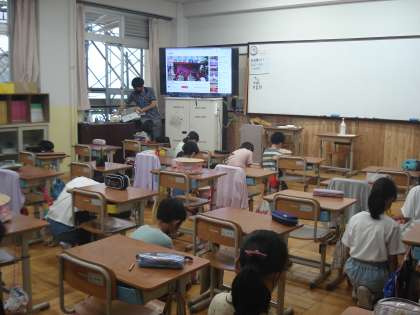 4年1組は、運動会で披露するダンスの振付けを確認しました。リズムとともに、太鼓をたたくタイミングや体の向きなどを確かめながら表現しました。