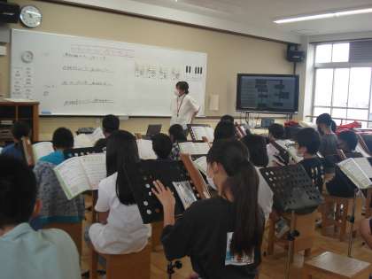 5年1組は、音楽科で、「鈴鹿にねむれ」という曲を学習しました。和音の移り変わり感じ取りながら歌いました。