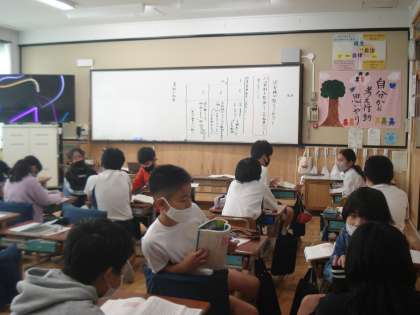 5年2組は、国語科で、「固有種が教えてくれること」という説明文を読みました。文中の資料を整理しながら、内容を読み取っていきました。ニホンオオカミやニホンカモシカの捕獲数と自然状況の関係について考えました。