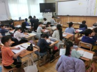 3年1組は、算数科で、分数の学習をしました。かさが分数で表せることを学びました。10分の1リットルの表し方がよくわかりました。