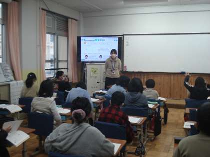 4年2組は、算数科で、分数のたし算を学習しました。今日は、帯分数のあるたし算について、どのように計算すればよいかを考えました。仮分数になおしてから計算をする方法を知りました。