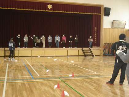 おやじの会の主催による、紙ヒコーキ大会と1/2成人式が行われました。各々が準備したり、その場で折ったりした紙ヒコーキを使って、距離や的当てに挑戦しました。折り方や投げ方を工夫しながら楽しく活動ができました。