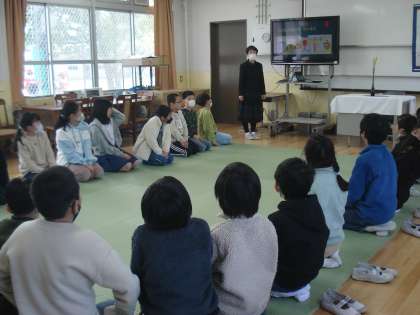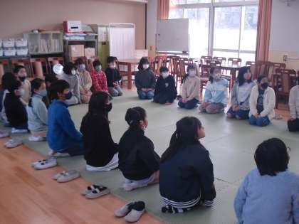 4年生は、特別活動で、伝統産業体験を行いました。茶道について、学習しました。自分でお茶を点てていただきました。「春光日々新」と書かれた掛け軸の働きについてもよくわかりました。