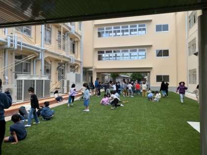 運動場でも、人工芝の中庭でも、みんな笑顔で元気よく遊ぶことができました。