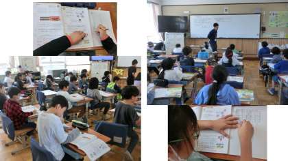 3年生の算数は、わり算。これまで学習してきたことを生かし、いろいろな練習問題に挑戦しました。とても集中して学びに向かっています。