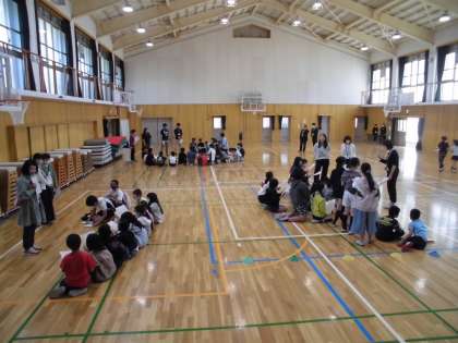 12日(金)の中間休みに、体育館にて部活動の開講式を行いました。それぞれ、自分が選んだ部活動の列に並び、話を聞きました。