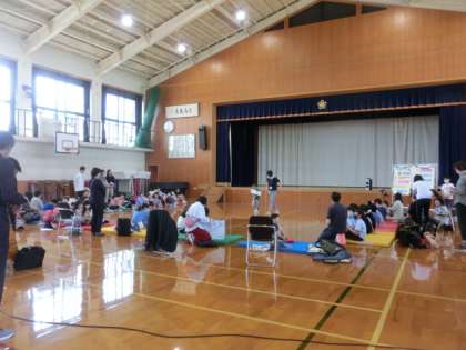 今日の午前中、3組は支部の交流会「みんなよろしく大会」に参加するため、衣笠小学校へ出かけました。