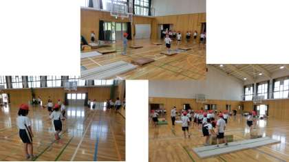 2年生はいろいろな種類のとびかたに挑戦しています。こうした基礎的な動きを身につけることで、今後の様々な運動に生かします。