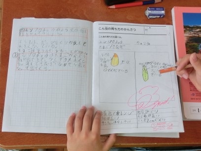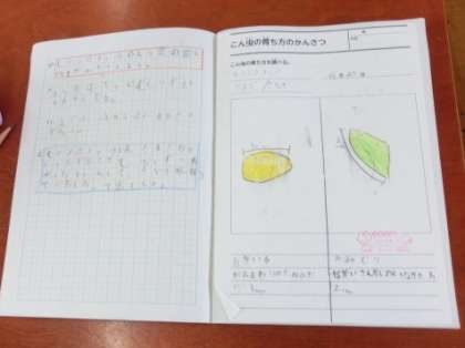 これまで観察してきたモンシロチョウの育ち方をまとめています。しっかりと観察・記録をしてきたので、とても詳しく説明することができます。すごい!
