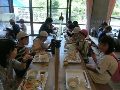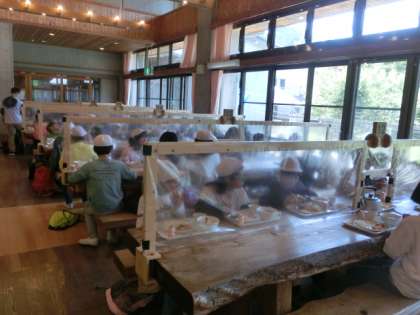 食堂でランチタイム。しっかり食べて、午後に備えます。