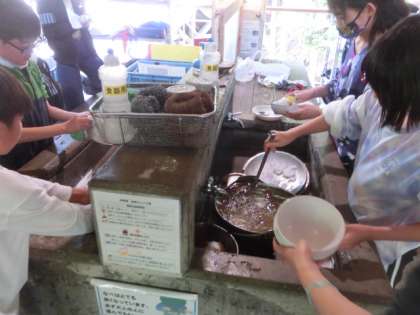 5年生 山の家 昼食(野外炊事:カレーライス)