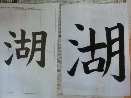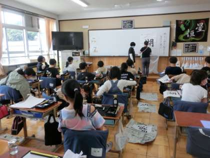 6年生の毛筆書写の様子です。一文字ですが、バランスを整えて書くにはどこに気をつければよいか…と考えながら書きます。