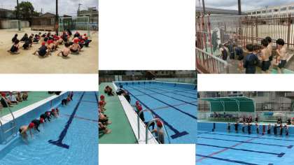 1年生にとって、学校のプールは初めてです。準備からすべてが新鮮。