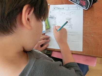 算数では、わり算の筆算に取り組んでいます。丁寧に、慎重に解きます。