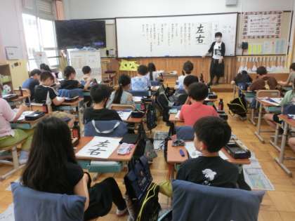 毛筆書写では「左右」と書きました。筆順も改めて確認しました。