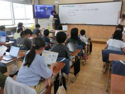 紫野タイムでは「夢に向かって自分color」の学習で、調べ学習を進めています。また理科では、顕微鏡の使い方を学んでいます。細かい、小さいものが見えると「お〜っ」と声が上がりました。