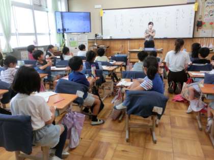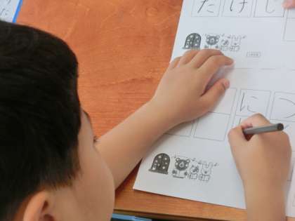 1年生の「しょしゃ」です。えんぴつで、一字一字ていねいに書きます。緊張感が伝わってきます。
