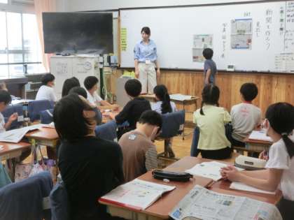 国語科では新聞づくりのために、実際の新聞を見ながらその工夫や特徴について調べ、これからの学習に生かします。