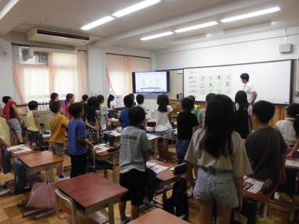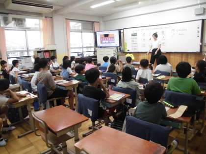 4年生は、外国語の学習をしました。文房具などの持ち物を英語でたずねたり、答えたりしました。