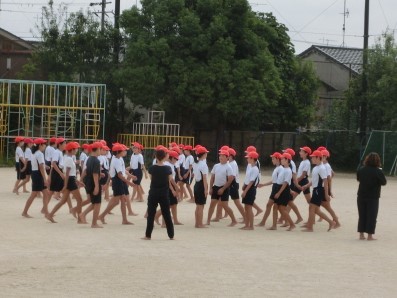 運動会に向けての集団演技。ずいぶんと形になってきました。びしっとした姿はさすが最高学年です。乞うご期待!