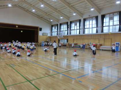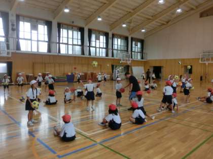 体育科では、運動会のオリジナル走の練習です。ボール扱い、なかなかじょうずになってきましたよ!