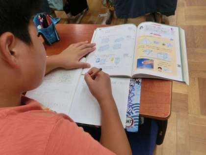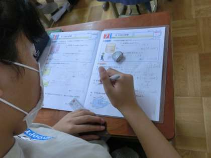 算数科では、立体の体積について、これまでの学びを練習問題等で確認し、定着を図ります。
