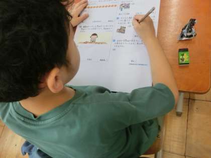算数科「あまりのあるわり算」と理科「音のふしぎ」のテストに挑みました。とても集中して取り組むことができています。