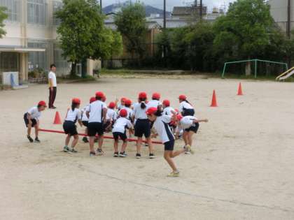 運動会に向けて「バンブーレース」の練習です。みんなで力と息と心をあわせて、がんばっています!