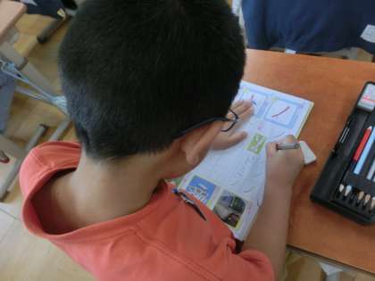 カタカナの練習です。「ノ」を書きました。簡単だけど、とても丁寧に書いています。簡単だからこそ、ですね。
