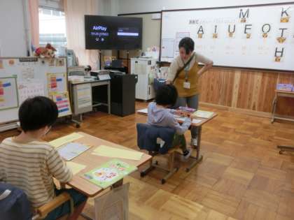 3組では、「ま行のローマ字」を学習しました。言葉も自分で考えて、書いて練習しました。