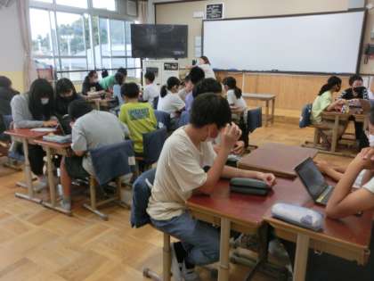 音楽では、和音の響きを感じながらリコーダーを演奏したり、声の重なる響きを感じながらボイスアンサンブルをつくったりしました。