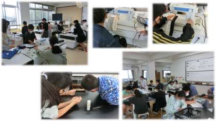 理科では、水溶液の性質や、金属を入れた時の反応などを調べました。薬品の扱いなどに十分注意して取り組みながら、性質をさぐりました。