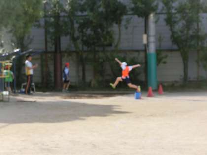 体育科では走り幅跳びにちょうせんしました。踏切にも気をつけて、遠くを意識して、ジャンプ!