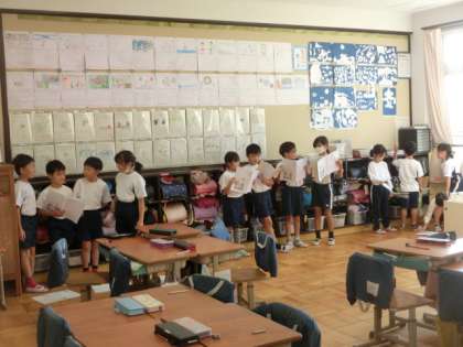 国語では、「お手紙」の音読練習です。お友だちとアドバイスしあって練習しました。
