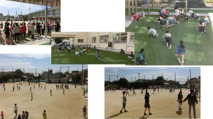 今日はなかよしDay。中間休みには、なかよしあそびを行いました。午後にはなかよし集会となかよしそうじを行う予定です。