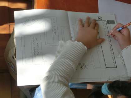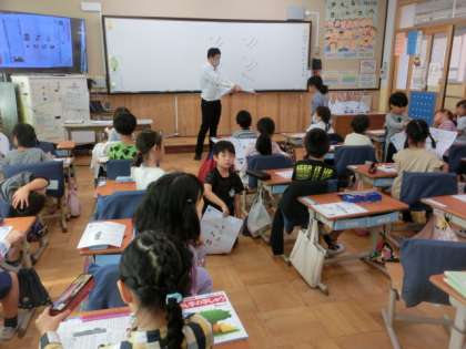 国語科では『くじらぐも』の学習で、一読した感想をまとめて交流しています。漢字の学習やテストのお直しなどにもいっしょうけんめい取り組んでいます。