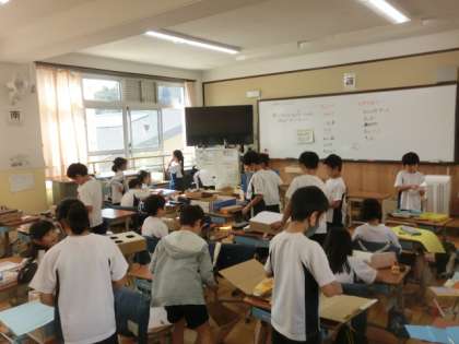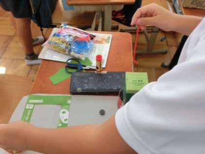 図工科では、磁石の特徴を生かした作品づくりに取り組んでいます。まずは磁石の特徴を確かめ、作品のイメージをつかんでいます。