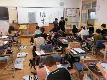 書写では、ひらがなで「はす」と書きました。とめ・はね・はらいに気をつけて、丁寧に書きました。